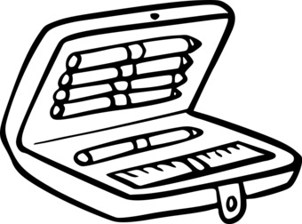 Die Zeichnung (s/w) zeigt eine Federtasche bzw. Federmappe. Das Bild ist unter CC0 lizenziert und kann somit frei verwendet werden. Es ist neben weiteren Bildern auch hier zu finden: https://cocomaterial.com