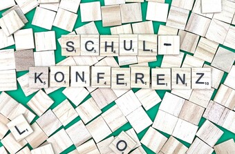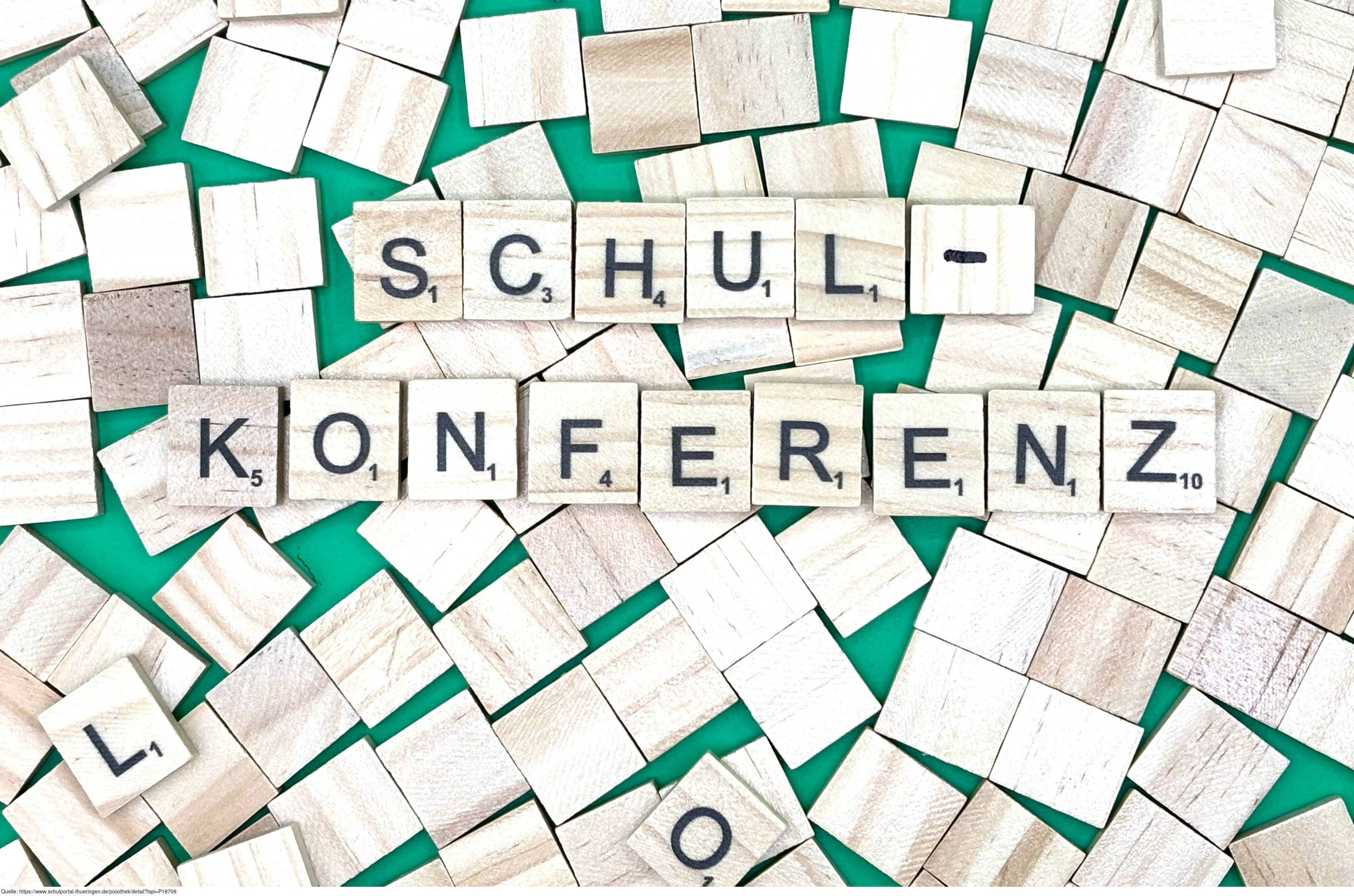 Aus Buchstaben wurde der Begriff „Schulkonferenz" gelegt. Es gelten die Nutzungsbedingungen der Mediothek und Pixiothek.