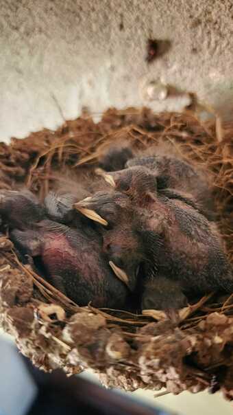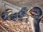 Junge Rauchschwalben nach der Fütterung