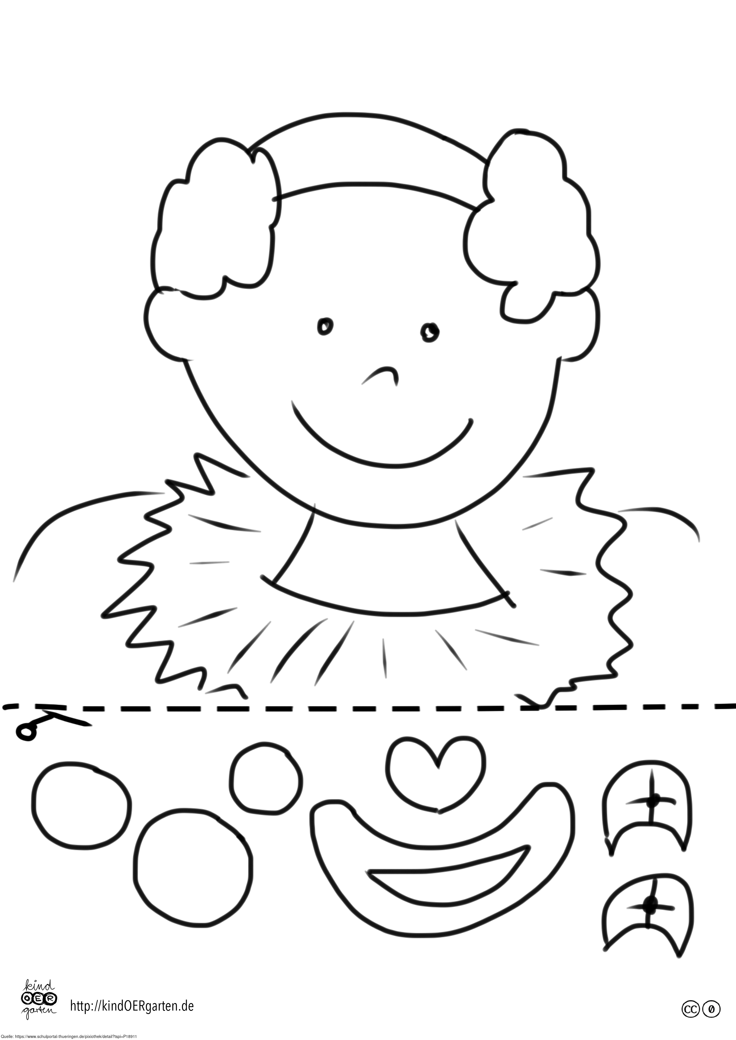 Das Bild zeigt einen Clown (s/w) und kann als Schnipselbildvorlage für Kinder im Kindergarten bzw. Elementarbereich dienen. Das Bild ist unter CC0 lizenziert und kann somit frei verwendet werden. Es ist neben weiteren Bildern auch hier zu finden: https://kindoergarten.wordpress.com/