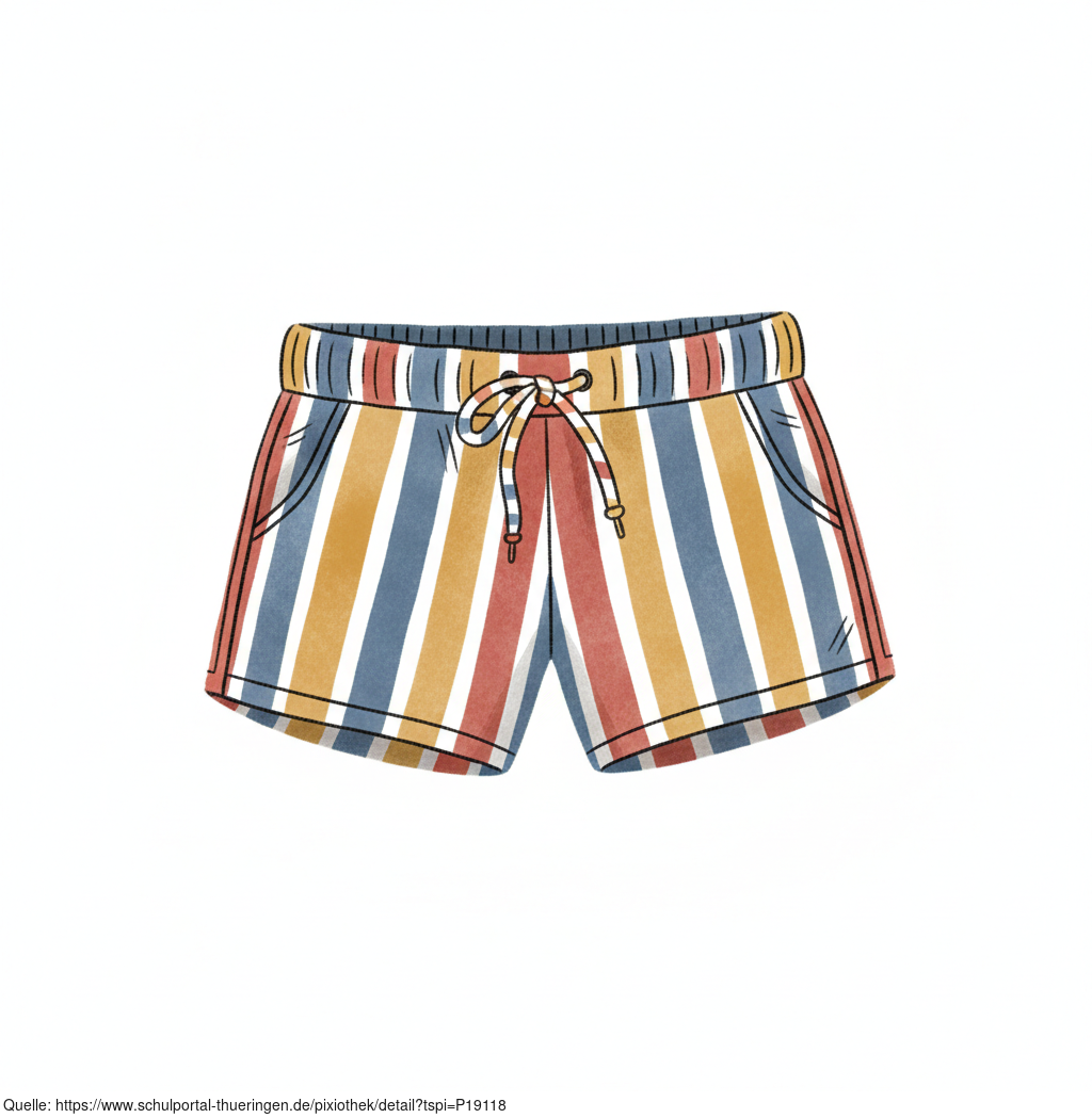Das Bild zeigt eine gezeichnete Badehose. Das Bild wurde mittels einer KI (Gemini) erstellt und ist unter CC0 lizenziert. Weitere Bilder aus Herrn Emrich-Försters Bild-Archiv findet man hier: https://pix.foerster.rocks/