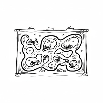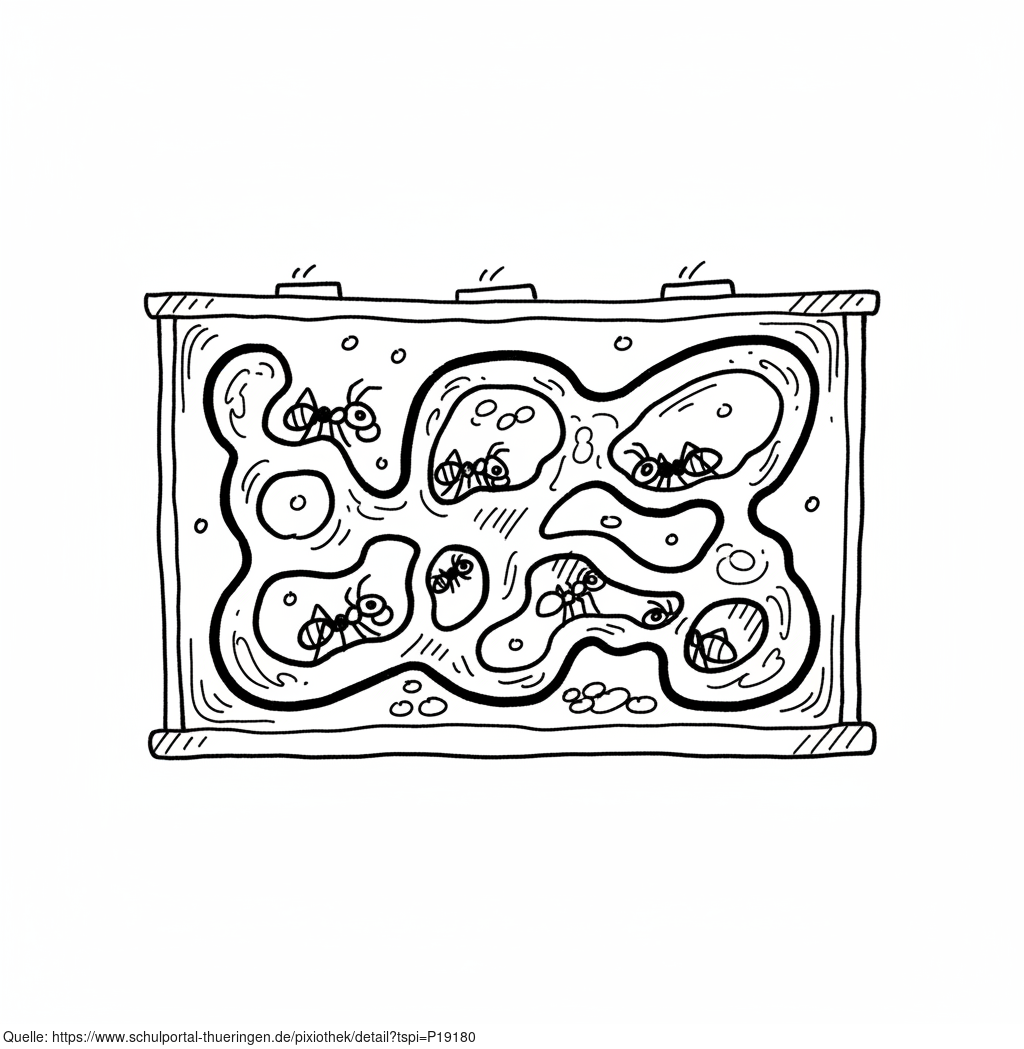 Das Bild zeigt eine gezeichnete Armeisenfarm. Das Bild wurde mittels einer KI (Gemini) erstellt und ist unter CC0 lizenziert. Weitere Bilder aus Herrn Emrich-Försters Bild-Archiv findet man hier: https://pix.foerster.rocks/