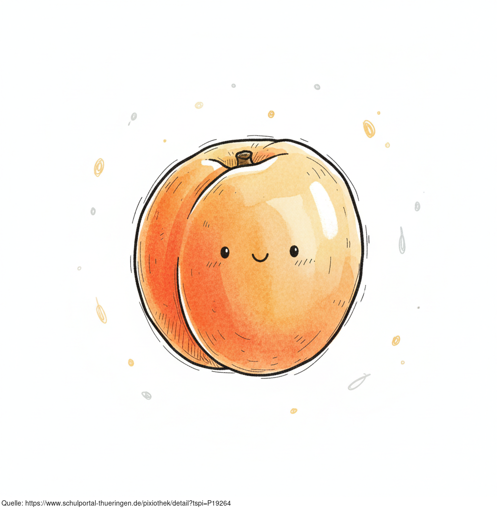 Das Bild zeigt eine gezeichnete Aprikose. Das Bild wurde mittels einer KI (Gemini) erstellt und ist unter CC0 lizenziert. Weitere Bilder aus Herrn Emrich-Försters Bild-Archiv findet man hier: https://pix.foerster.rocks/