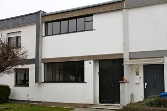Abgebildet ist ein Reihenhaus der Siedlung Dessau-Törten (1926 - 1928, Architekt Walter Gropius).