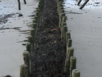 Abgebildet sind Holzbuhnen mit Steinbefestigung.