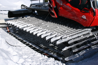 Lawinenschutz: Nahaufnahme Kette einer Pistenraupe