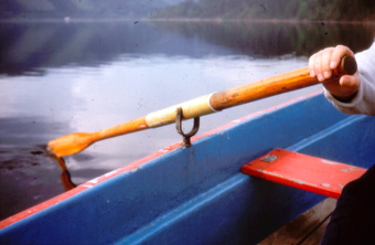 Abgebildet ist ein Ruder am Ruderboot (Zweiseitiger Hebel).