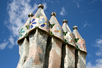 Das Foto gehört zur Serie "Barcelona". Barcelona ist die Hauptstadt Kataloniens (Provinz in Spanien) und für ihre Architektur und Kunstwerke bekannt. Das Bild zeigt Kamine auf der Dachterrasse der Casa Batlló. Es gelten die Nutzungsbedingungen der Mediothek und Pixiothek.