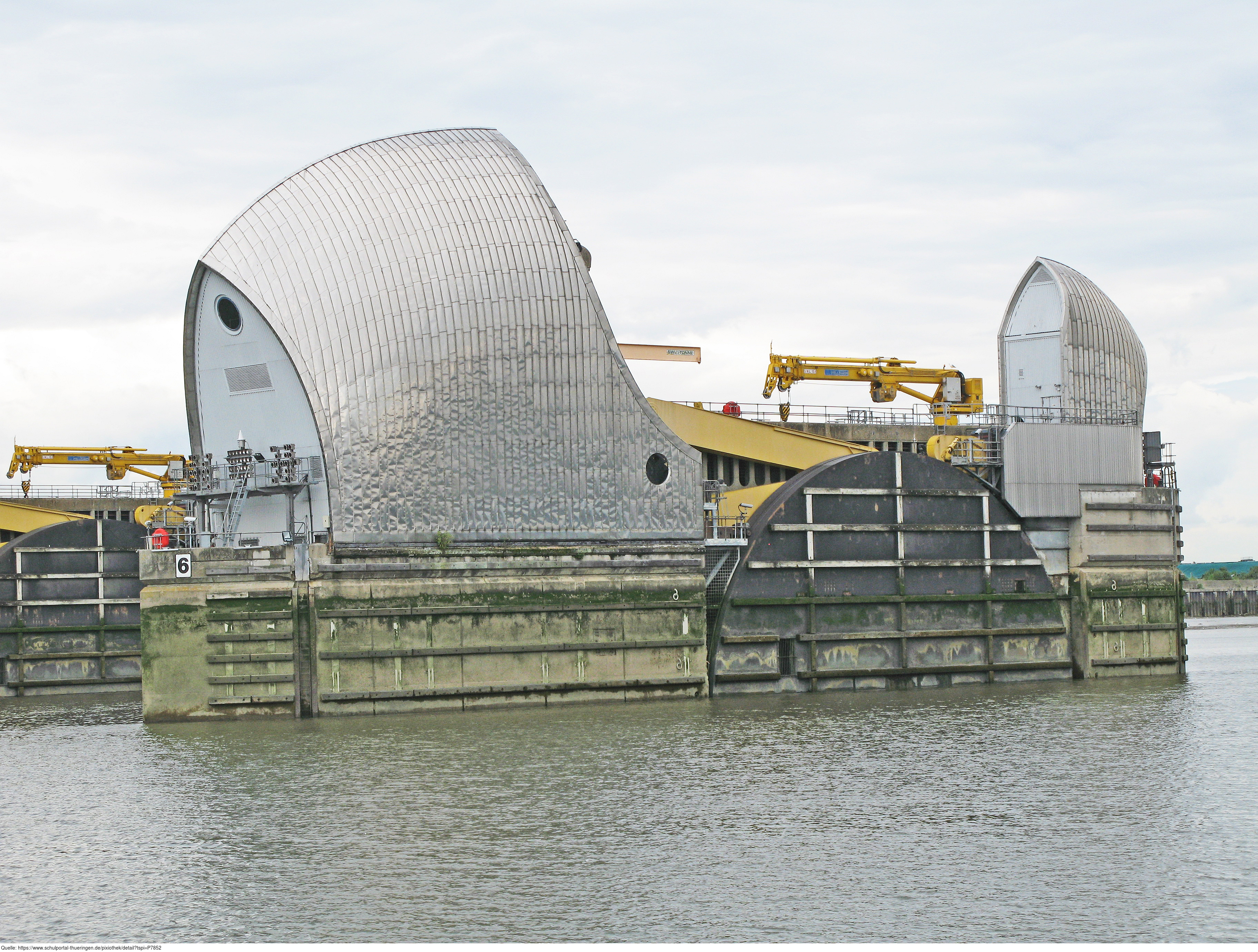 Das Foto gehört zur Serie London 2016. Es zeigt "The Thames Barrier", eines der größten Sturmflutsperrwerke der Welt. Es gelten die Nutzungsbedingungen der Mediothek und Pixiothek.