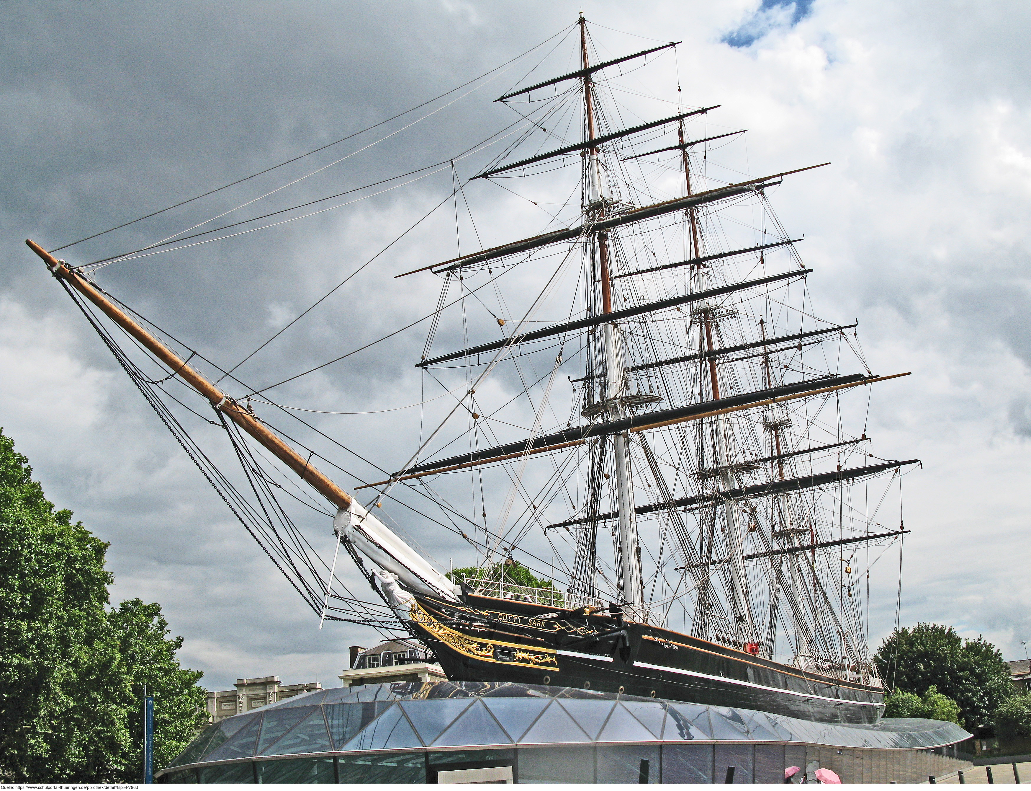 Das Foto gehört zur Serie London 2016. Es zeigt das historische Segelschiff Cutty Sark, den letzten britischen Teeklipper. Sie war im 19. Jahrhundert eines der schnellsten Segelschiffe ihrer Zeit. Heute liegt die Cutty Sark auf einem Trockendock neben dem Fährterminal "Greenwich Pier" und beherbergt ein Schifffahrtsmuseum. Es gelten die Nutzungsbedingungen der Mediothek und Pixiothek.