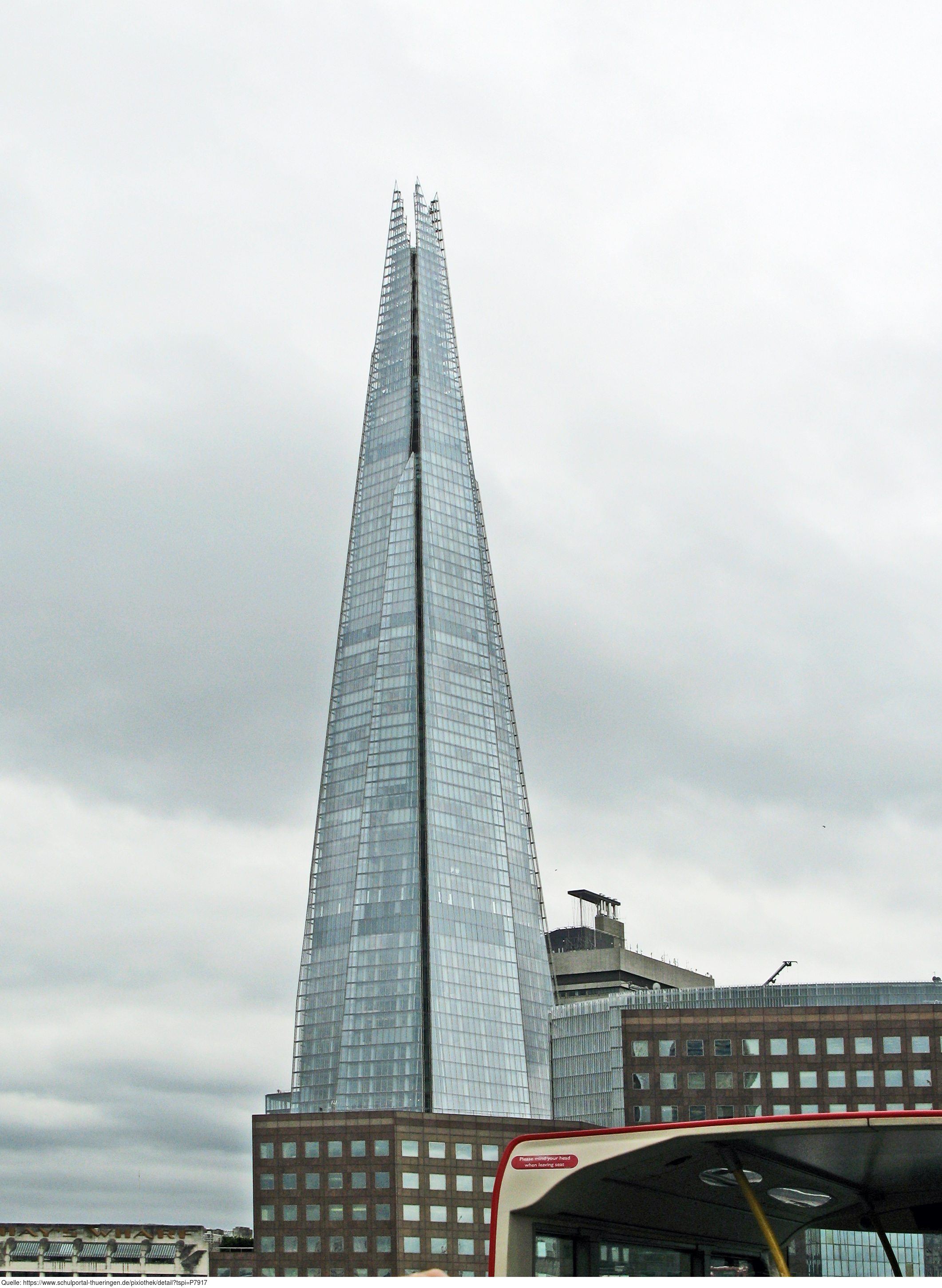 Das Foto gehört zur Serie London 2016. Es zeigt das Hochhaus "The Shard", 32 London Bridge St, London SE1 9SG. Es hat eine Höhe von 310 Metern. Es gelten die Nutzungsbedingungen der Mediothek und Pixiothek.