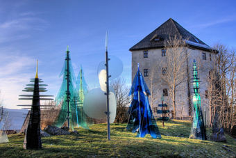 Der gläserne Wald bei der bayerischen Stadt Regen befindet sich auf einem den 2000 Quadratmeter großen Gelände unmittelbar neben der Burg Weißenstein. Die Bäume sind aus farbigem Flachglas gefertigt. Tagsüber bricht sich das Sonnenlicht in den Bäumen aus Glas. Nach Sonnenuntergang werden die Bäume durch einige Bodenfluter angestrahlt. Im Jahr 2002 wurde die Stadt Regen mit dem Glasstraßenpreis ausgezeichnet.