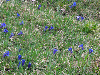 Das Bild gehört zur Serie "Alpen". Es zeigt eine Gebirgswiese in Österreich mit Enzianblüten. Es gelten die Nutzungsbedingungen der Mediothek und Pixiothek.
