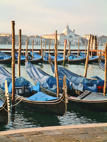 Das Foto gehört zur Serie "Venedig". Es zeigt Gondeln in der Lagune. Es gelten die Nutzungsbedingungen der Mediothek und Pixiothek.