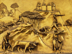 Das Foto gehört zur Serie "Paradiestür am Baptisterium von Florenz". Es zeigt Jakob und Esau, ein Bronzerelief von Lorenzo Ghiberti. Es ist links in der dritten Reihe der zehn Bildtafeln in seine Paradiestür (auch Paradiespforte genannt) eingebunden. Es gelten die Nutzungsbedingungen der Mediothek und Pixiothek.