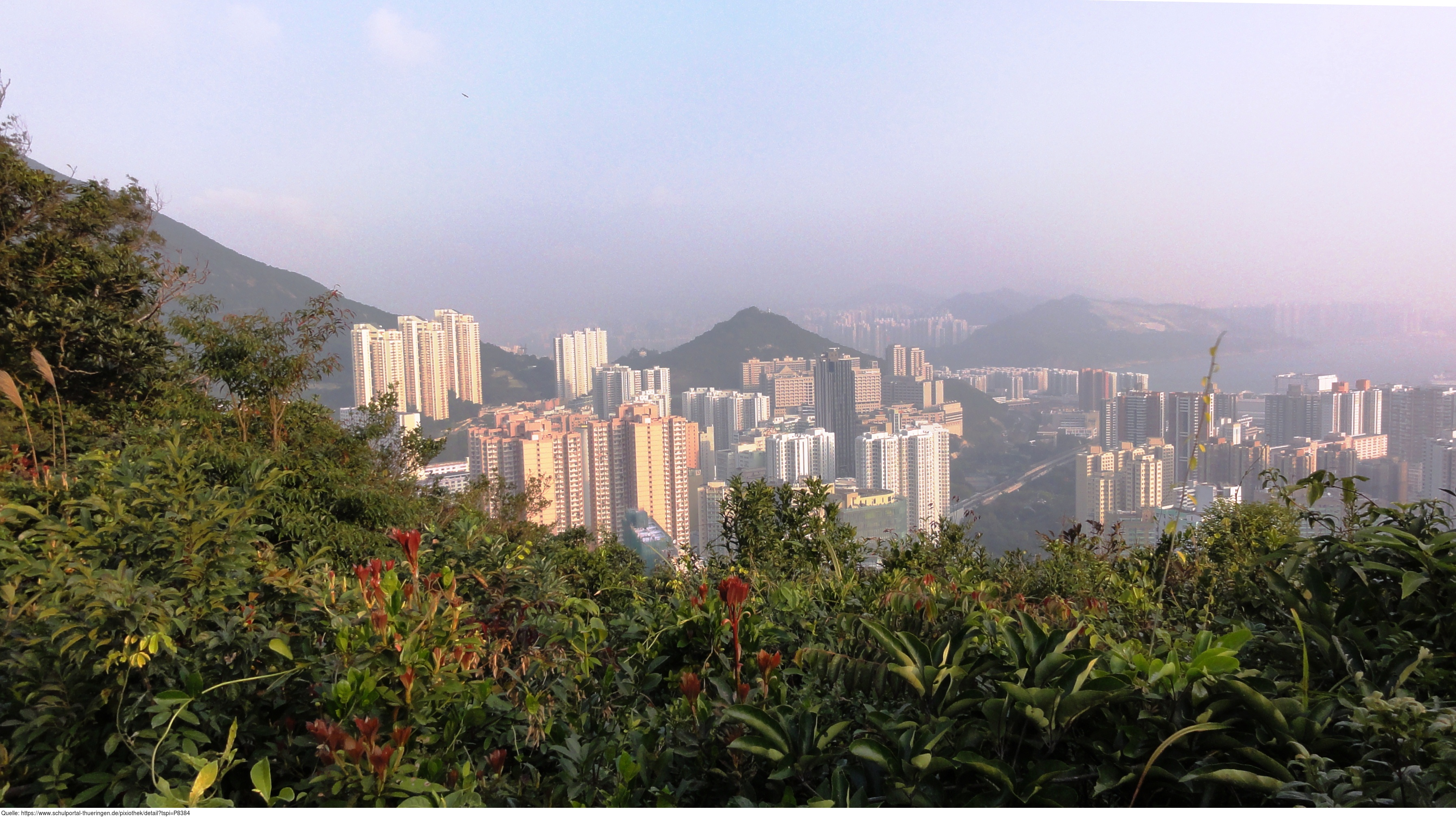 Das Foto gehört zur Serie "Hong Kong Trail". Es zeigt den Blick auf die Hochhäuser von Hong Kong vom Weg des Hong Kong Trails. Die ersten 200 Höhenmeter sind absolviert. Es gelten die Nutzungsbedingungen der Mediothek und Pixiothek.