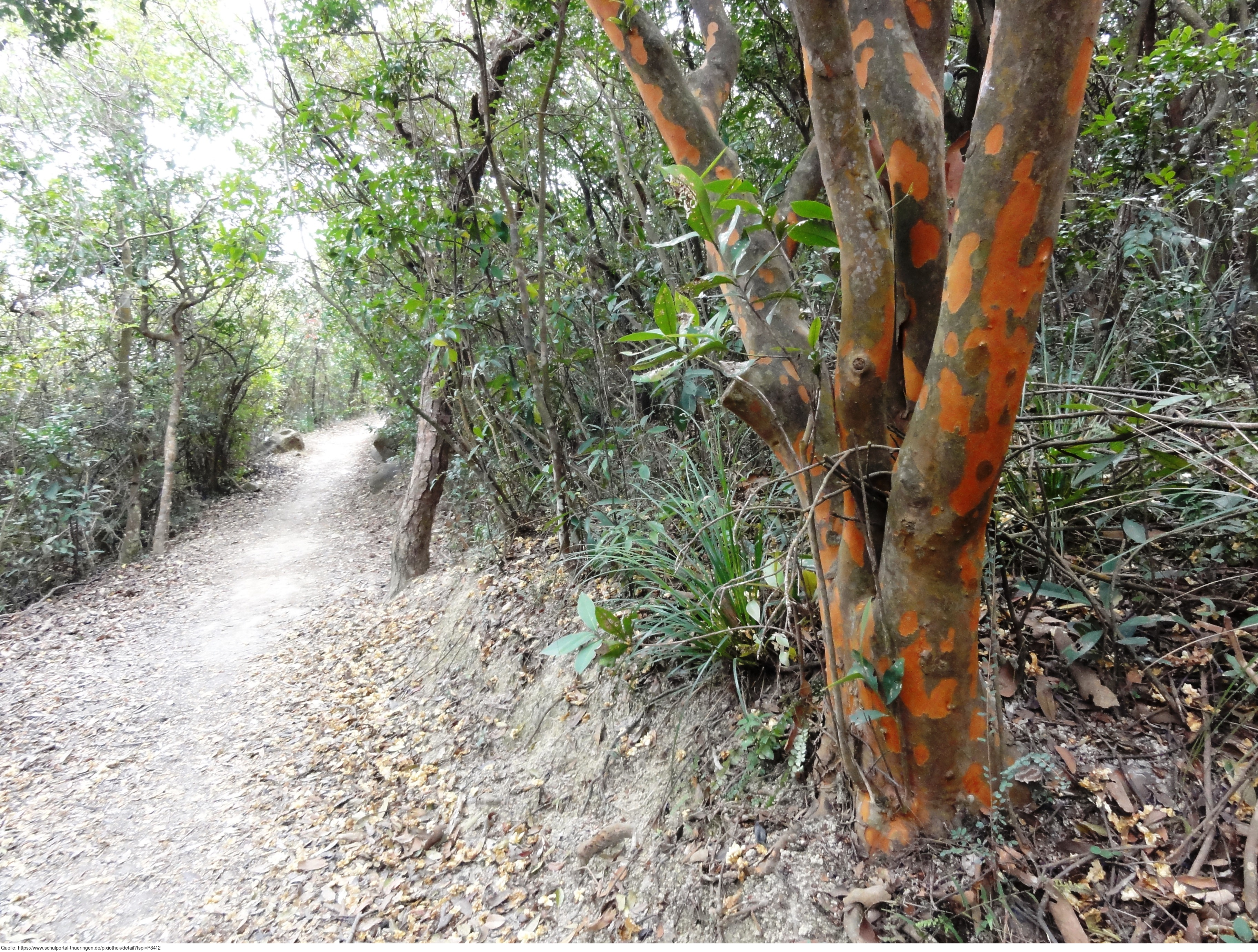 Das Foto gehört zur Serie "Hong Kong Trail". Es zeigt den Weg durch dichten Dschungel in Richtung Aberdeen Country Park. Es gelten die Nutzungsbedingungen der Mediothek und Pixiothek.