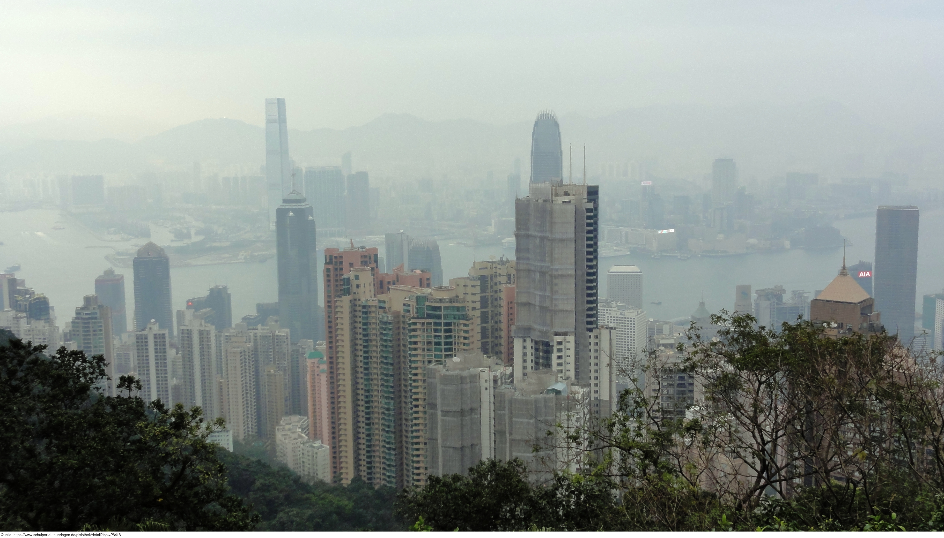 Das Foto gehört zur Serie "Hong Kong Trail". Es zeigt den Blick vom Victoria Peak - mit 552 Metern Höhe der bekannteste Berg Hongkongs. Es gelten die Nutzungsbedingungen der Mediothek und Pixiothek.