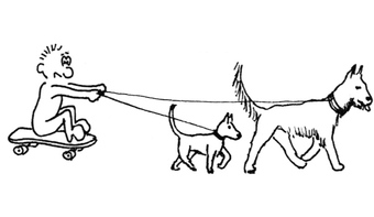 Das Foto gehört zur Serie "Paul". Es zeigt Paul auf einem Skateboard gezogen von Hunden. Das Bild ist unter CC0 lizenziert und kann somit frei verwendet werden.