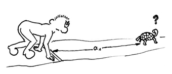 Das Foto gehört zur Serie "Paul". Es zeigt den Wettlauf von Paul und einer Schildkröte, die beim Start einen Vorsprung hat. Die Zeichnung diente dem Urheber zur Veranschaulichung eines mathematischen Paradoxons. Das Bild ist unter CC0 lizenziert und kann somit frei verwendet werden.