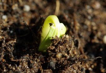 Das Foto gehört zur Serie "Pflanzen". Es zeigt einen Gurkenkeimling. Das Bild ist unter CC0 lizenziert und kann somit frei verwendet werden.