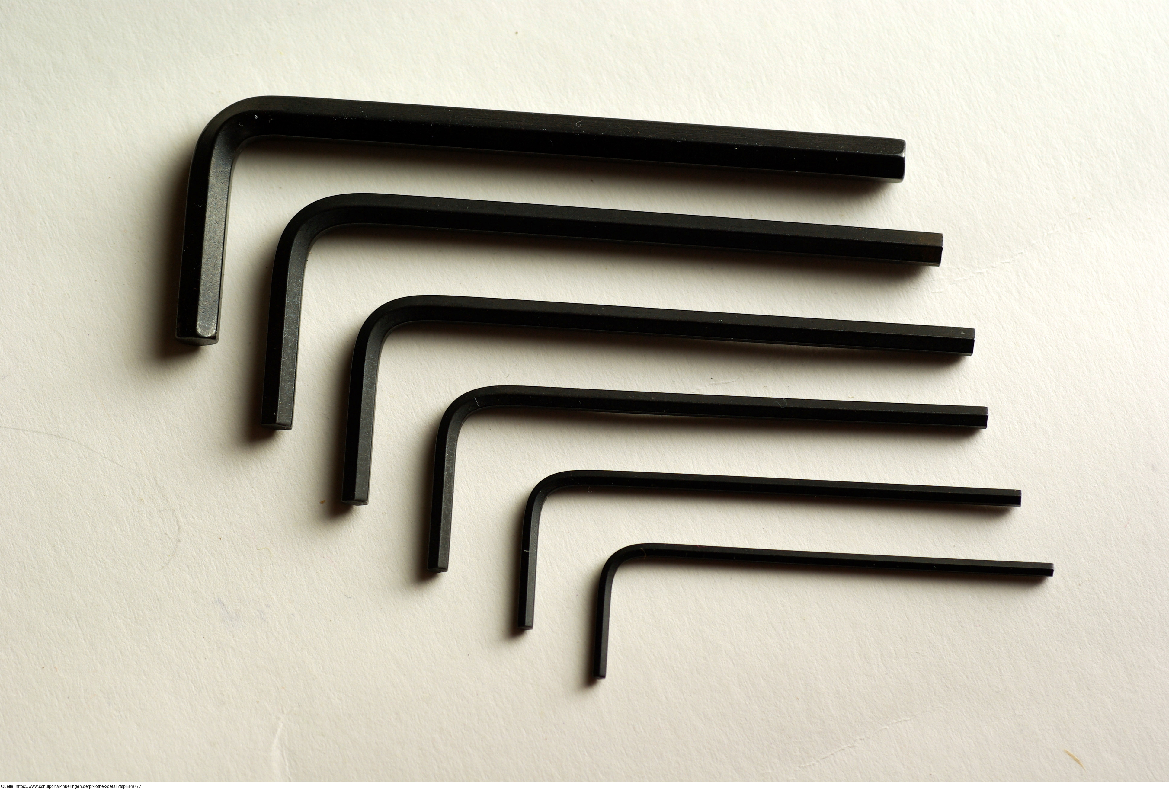 Das Foto gehört zur Serie "Werkzeuge". Es zeigt einen Satz Innensechskantwinkelschlüssel. Das Bild ist unter CC0 lizenziert und kann somit frei verwendet werden.