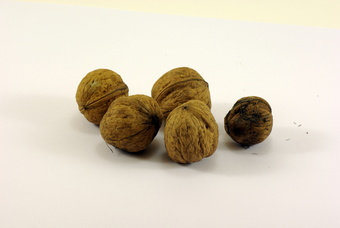Das Foto gehört zur Serie "Nahrungsmittel". Es zeigt Nüsse des Laubbaums Echte Walnuss (Juglans regia). Das Bild ist unter CC0 lizenziert und kann somit frei verwendet werden.