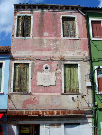 Das Bild gehört zur Serie "Venedig". Es zeigt ein altes Haus mit Gedenktafel in Burano, einer Insel in der Lagune von Venedig. Das Bild ist unter CC0 lizenziert und kann somit frei verwendet werden.