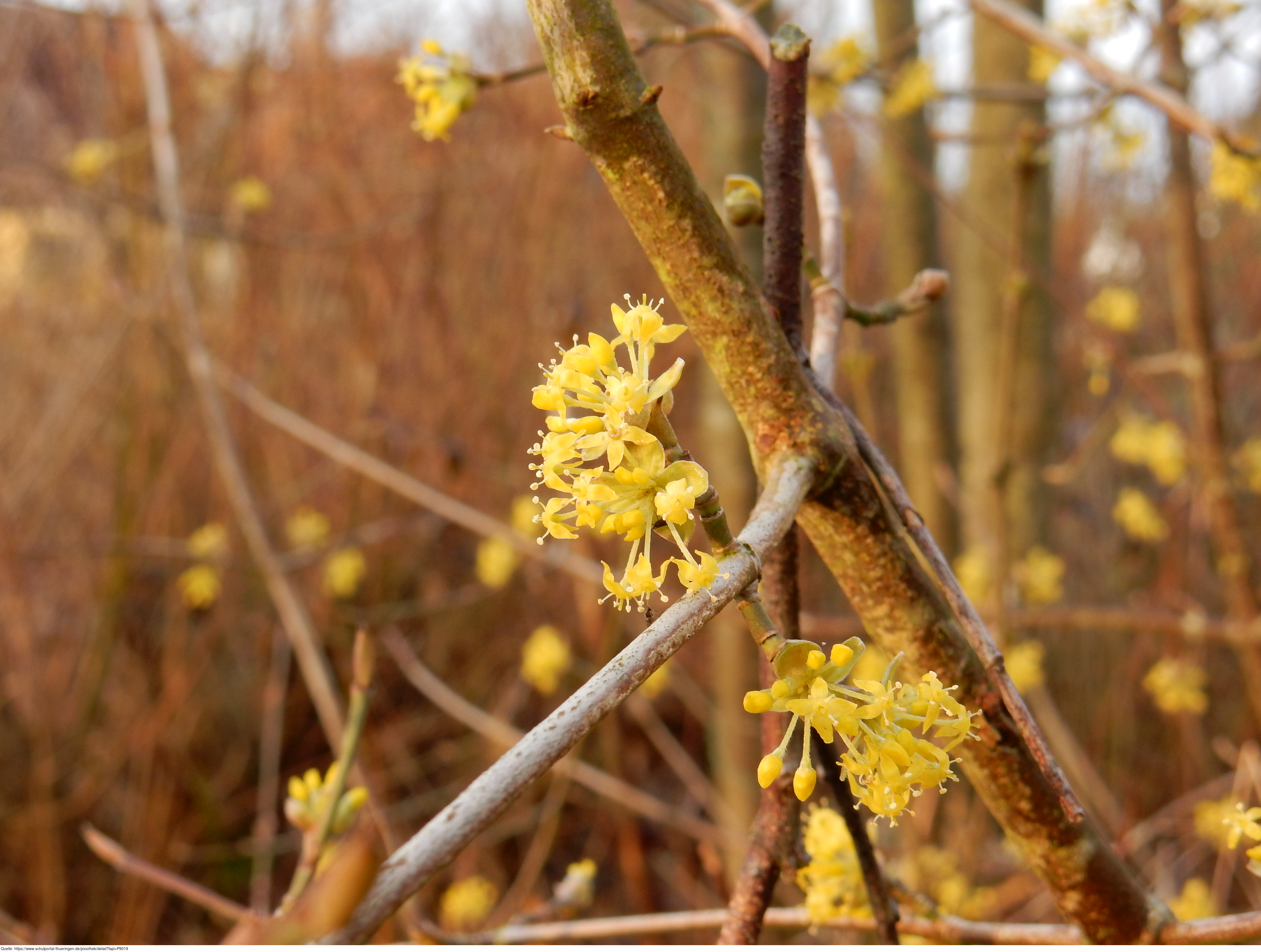 Das Foto gehört zur Serie "Laubbäume". Es zeigt eine blühende Kornelkirsche (Cornus mas), auch Herlitze, Dürlitze, Hirlnuss genannt. Das Bild ist unter CC0 lizenziert und kann somit frei verwendet werden.
