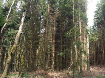 Das Foto gehört zur Serie "Laubbäume". Es zeigt einen Nadelwald - vorwiegend Fichten im Bestand. Das Bild ist unter CC0 lizenziert und kann somit frei verwendet werden.