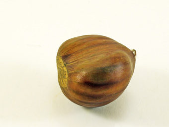 Das Foto gehört zur Serie "Nahrungsmittel". Es zeigt eine Esskastanie, auch Marone genannt. Esskastanien sind die Früchte der Edelkastanie (Castanea sativa). Das Bild ist unter CC0 lizenziert und kann somit frei verwendet werden.