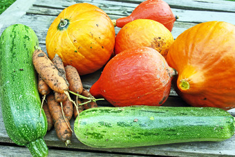 Gemüse: Kürbis, Karotte, Zucchini